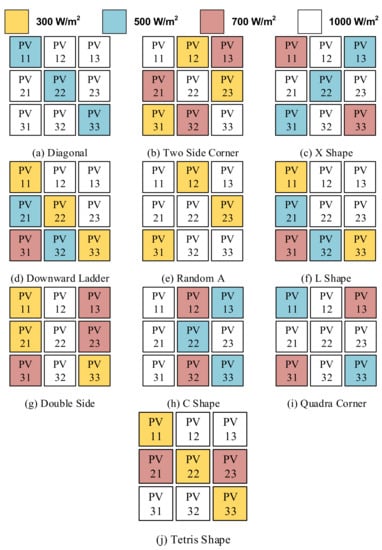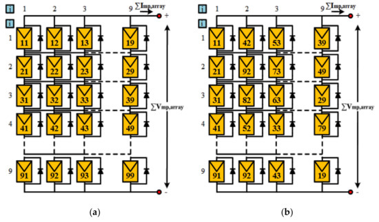 - Horoufiany, M.; Ghandehari, R. Optimization of the Sudoku based reconfiguration technique for PV arrays power enhancement under mutual shading conditions. Sol. Energy 2018, 159, 1037–1046. [Google Scholar] [CrossRef]