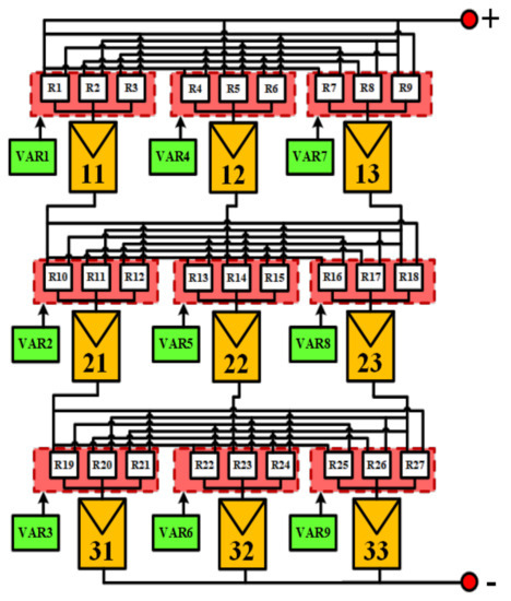 | [33] | Total Cross Tied (TCT) 9 × 9 array size | Sudoku | This paper implemented a fixed reconfiguration solution based on the Sudoku puzzle pattern as an optimization tool to minimize the shading effects. The PV array’s physical location in a total cross tied (TCT) scheme had been rearranged based on a new modification of Sudoku dispersion rules. |
