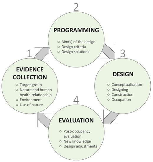 Gramkow, M.C.; Sidenius, U.; Zhang, G.; Stigsdotter, U.K. From Evidence to Design Solution—On How to Handle Evidence in the Design Process of Sustainable, Accessible and Health-Promoting Landscapes. Sustainability 2021, 13, 3249. https://doi.org/10.3390/su13063249