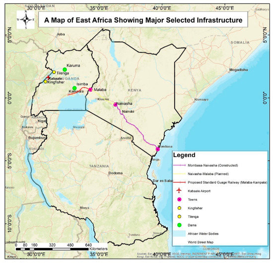 Map of East Africa showing the locations of the infrastructure discussed in this paper. (produced by Nuwagira Upton, Mbarara University of Science and Technology, Mbarara, Uganda).