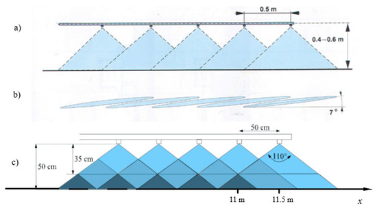 (2) To add up, sequentially, overlapping output of nozzles located every 0.5 m [22].