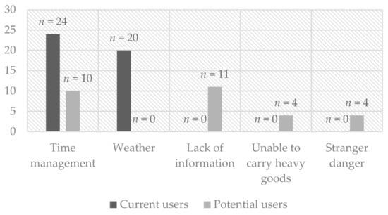 “It is hard to use the bus if we go shopping, right? We need to carry many things, so it is not so comfortable. That is why I always use cars” (Female, Potential User, Group, 3).