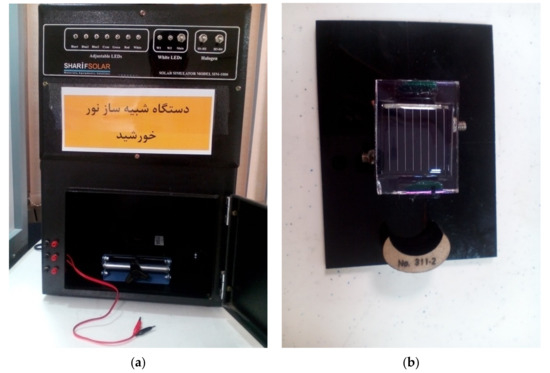 Experimental solar cell testing system (a) and a solar cell (b).