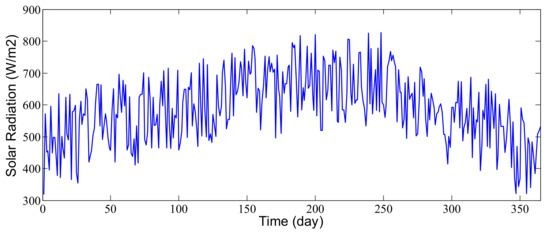 The trained NCPRT2FS is used to calculate the solar power of Ilam. Figure 12 shows the solar radiation of Ilam for a year. Figure 13 shows the predicted solar power in Ilam.