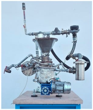 The gasification unit used to provide syngas to the generator was the “Femto Gasifier”, a table-top downdraft gasifier designed and developed by the authors at the “Enzo Ferrari” Engineering Department of the University of Modena and Reggio Emilia Figure 2 [22].