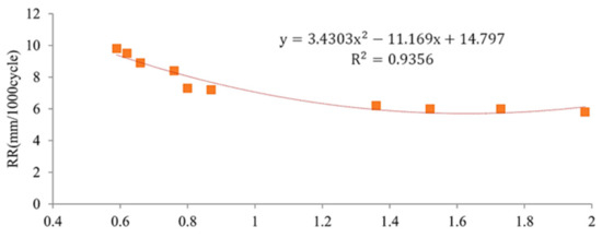 According to research previously conducted by Fakhri et al. in 2017, the rutting resistance determined by the static test (Kim test) was correlated perfectly () with the parameters obtained from the wheel track test [28]. Figure 9 shows the Pearson correlation calculated in their study. Kim’s test results could provide a proper estimation of asphalt mixtures’ rutting damage potential.