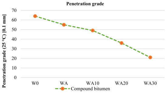 The penetration grade (25 °C), softening point test, and ductility of bitumen at 25 °C were conducted according to ASTM D5, ASTM D36, and ASTM D113 standards, respectively. PI index, which was calculated by the obtained results of penetration grade and the test results of softening point tests [31], was employed because of possible changes in temperature susceptibility of the bitumen due to polymer modification and its effects on the penetration grade and softening point changes [32,33,34].