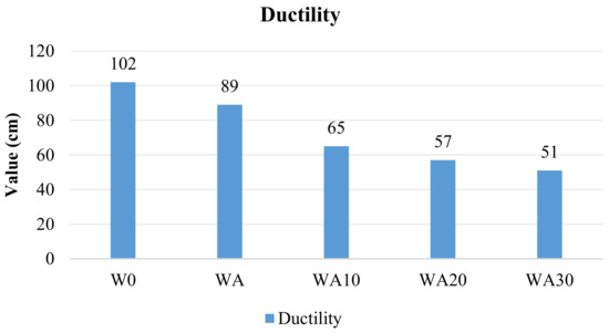 According to Marshall stability and flow tests results, MQ values are calculated and presented in Figure 18. The value of MQ of the modified mixtures is higher than that of the control mix. The MQ is a measure of the material’s resistance to shear stresses, permanent deformation, and rutting [47].