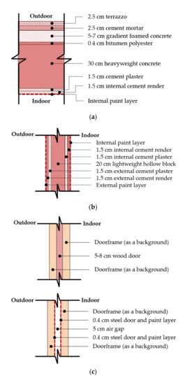 Details of opaque constructions and the component materials for the selected mosque building.
