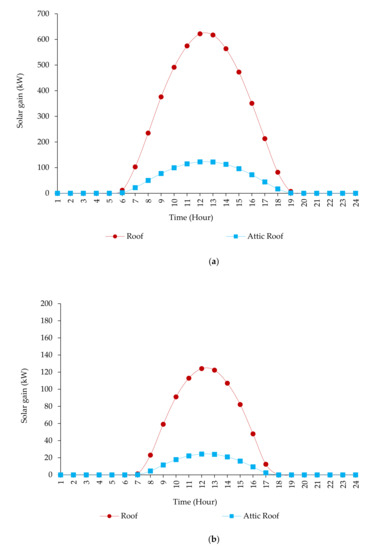 Solar gain of the roof on: (a) 22 June and (b) 22 December.