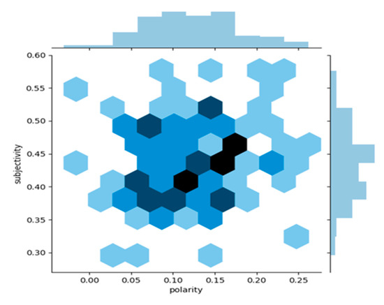 We conducted SA using the dictionary-based approach of the lexicon-based method. To analyze the people’s opinions, we studied the polarity and subjectivity of articles. Polarity determines whether a text expresses a positive or negative or neutral opinion. It ranges between −1 to +1, where −1 is extremely negative sentiment and +1 is extremely positive sentiment. On the other hand, subjectivity classifies a text as a fact or opinion. It ranges between 0 and +1, where 0 indicates very objective, and +1 indicates very subjective (Yaqub et al., 2018). We employed TextBlob (http://textblob.readthedocs.org/en/dev/) (accessed on 12 May 2020), a framework developed by Loria [43], which has been widely used by the researchers [44,45] to conduct SA. TextBlob is a Python (2 and 3) library for processing textual data. Micu et al. [46] employed TextBlob to analyze customers’ liking, rating and reviewing restaurants. They found that TextBlob is an effective tool sentiment analysis tool. Similarly, Hasan et al. [47] also advocated that TextBlob is one of the best tools to calculate polarity and subjectivity scores for textual data. In a recent study by [48], TextBlob was used to conduct the sentiment analysis of patients’ feelings suffered from a rare disease.