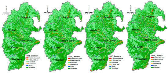 Here, the CA–Markov model was used to simulate the spatial and temporal distribution of land use in the upper reaches of the Minjiang River in Sichuan Province. Then, the contradiction between humans and land brought about by the changes in cultivated land was analyzed. Finally, according to the threshold of contradiction between humans and land and different protection objectives, the spatial priority protection area of cultivated land was simulated. Our major findings are as follows.