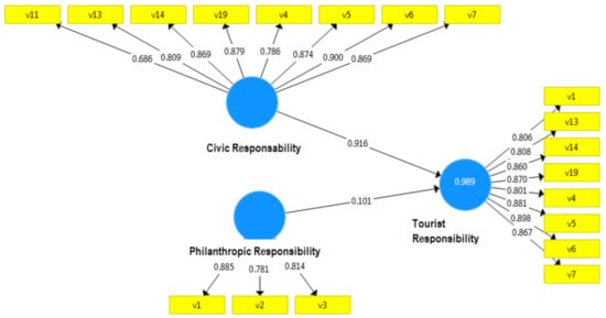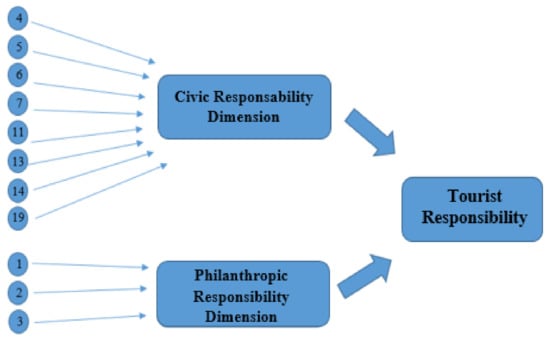 Responsible tourism is a matter of respect, awareness, and education through local identity and interaction with the locals and with whom tourists can share a common sense of reciprocity and involvement. The theory that tourism responsibility from the tourist perspective is measured through the dimension of civic responsibility and the dimension of philanthropic responsibility is in line with the proposal defended by several authors [22,35]. Like responsible tourism, the concept of tourism sustainability, which is a prerequisite for sustainable tourism, suggests balancing the economic, socio-cultural, and ecological dimensions for the appropriate development of tourism in the territories [66]. Accordingly, Buckley [67] concludes that the four most popular areas of sustainable tourism are ecotourism, responsible tourism, community-based tourism, and conservation tourism. Based on the UNWTO [24], the variables presented in these dimension into the extent to which they meet the analysis between the ecological, the socio-cultural and the economic. The World Tourism Organization considers that these three levels of tourism sustainability guarantee the environmental development, which by analyzing from the tourist point of view, through its sustainable action in the territory is possible to be achieved. The choice of the tourist for a decent tourist destination and the fact that it is participatory, contributes to the autonomy of local communities, preserving their culture, identity and values, guaranteeing the future generation, and economically, the tourist contributing to the purchase of local products, allows economic development and proper management of resources.