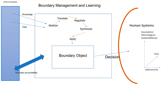 To complete this level of the model, Knowledge Management (KM) was added at the heart of every point in the model where human and/or machine learning and decision making takes place (see Figure 2). Obviously, all KM activities are connected, related, and intertwined, including boundary management arrangement [73].