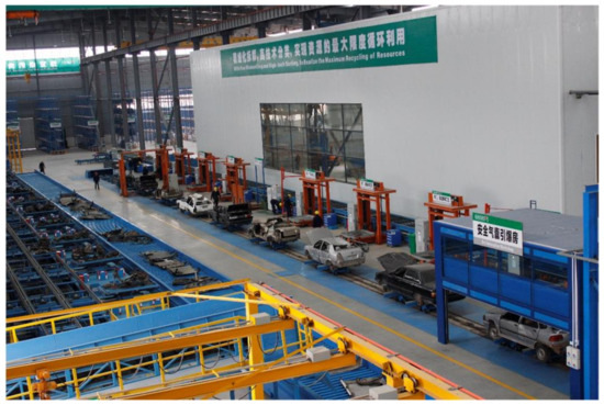 With the advancement of manufacturing processes, the lifecycle of products is constantly shortened, and more end-of-life (EOL) products are becoming increasingly unavailable [1]. The “circular economy” and “remanufacturing” industries are in the ascendant, the recycling of end-of-life products such as black and white home appliances and automobiles has received increasing attention. The latest data showed that the number of EOL automobiles in China was about 2.615 million in 2020, the total weight of EOL vehicles was nearly 6.267 million tons, and each ton of the resources can recover 72.0% of waste steel, 6.0% of waste nonferrous metals, 6.3% of waste plastics, 4.4% of waste rubber and 1.7% of waste glass; if they are directly discarded, it will not only waste resources but also pollute the environment [2]. Disassembly, as an important stage after recycling and before reuse, plays an important role in the process from waste to available resources [3]. When dealing with a large number of product disassemblies, the paced disassembly line has a great advantage of efficiency compared with the fixed disassembly position layout [4]. How to assign disassembly tasks to reasonable stations in proper order under given constraints, and achieve the expected objectives, such as reducing the cycle time of disassembly line and improve the efficiency of comprehensive disassembly, is called the disassembly line balancing problem [5,6].