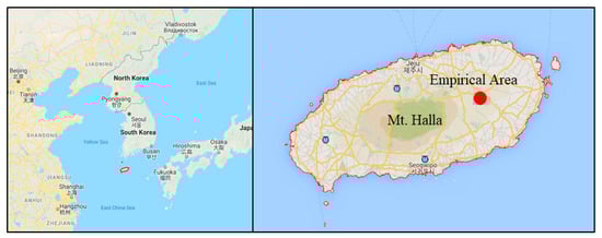 Jeju is a volcanic island located in the southwest of South Korea. The island is isolated from the Korean peninsula, but is about a one-hour distance by flight from Seoul (see Figure 1). Designated as a special autonomy province that maintains unique history and culture distinctive from those of the inland of South Korea (hereafter referred to as Korea), Jeju island attracts many tourists worldwide. With the attraction of volcanic mountain views, clement weather, and beaches, the number of visitors, in particular, from China and Japan is growing. The average number of visitors to Jeju is estimated to be approximately 13.6 million annually.