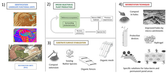 Following the most innovative guidelines in ecological restoration [33,34], we suggest drawing up a list of consecutive steps to achieve the pursued objectives:
