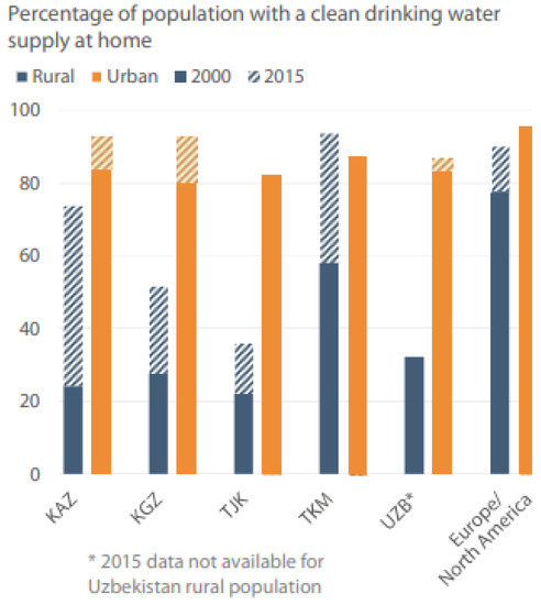 - Burunciuc, L. Improving Water and Sanitation in Central Asia Requires Determination and Shared Commitment. World Bank Blog, 24 December 2019. Available online: https://blogs.worldbank.org/europeandcentralasia/improving-water-and-sanitation-central-asia-requires-determination-and-shared (accessed on 29 October 2020).