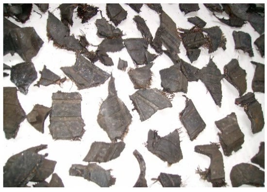 The methodology to determine the quantity of biomass included in scrap tires used through the 2010–2016 period, is based on the methodology described in []. We will apply this methodology to find out the amount of biomass in scrap tires. To this end, annual samples of scrap tires have been taken, differentiating between light and heavy vehicles scrap tires. Light vehicles are defined as good vehicles weighing less than 3.5 tonnes and heavy vehicles are defined as those weighing more than 3.5 tonnes. The Spanish vehicle fleet had a total of 34,434,791 vehicles in 2019 [].