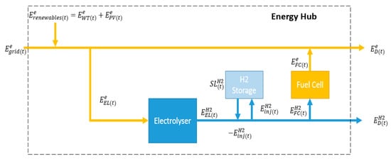 8. Kholardi, F.; Assili, M.; Lasemi, M.A.; Hajizadeh, A. Optimal Management of Energy Hub with Considering Hydrogen Network. In Proceedings of the 2018 International Conference on Smart Energy Systems and Technologies (SEST), Seville, Spain, 10–12 September 2018; IEEE: Piscataway, NJ, USA, 2018; pp. 1–6. [Google Scholar]