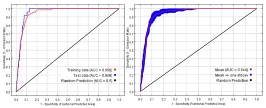 After adjusting the model parameters (LQHPT), the model was better than the default parameters (LQHP) (Table 2). The AUC values of the training data and the test data were 0.950 and 0.958, respectively (Figure 4). The accuracy of prediction during the current and future periods was found to be “excellent”.
