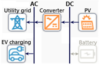 - Locment, F.; Sechilariu, M.; Forgez, C. Electric vehicle charging system with PV grid-connected configuration. In Proceedings of the IEEE Vehicle Power and Propulsion Conference (VPPC), Lille, France, 1–3 September 2010. [Google Scholar]