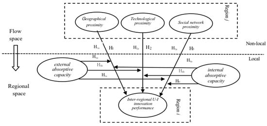 The remainder of this article comprises six sections. Section 2 proposes the research hypotheses based on the theoretical background and establishes a conceptual model of our research. Section 3 presents the sample source, the measurement of various variables, and the analysis techniques. Section 4 provides the main effect of multidimensional proximity on cross-regional U-I collaborations, the moderating impact of regional absorptive capacity, and regional heterogeneity. Section 5 and Section 6 illustrates the results and provides the policy implications. Finally, Section 7 concludes this paper with limitations.