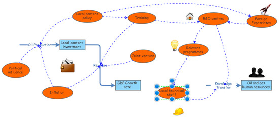 This, in turn, is expected to provide policymakers and industrial players with future projections and requirements and the strategies for addressing the projections. Consequently, the system dynamics-based method is used to identify factors likely to affect HRD and subsequently modelled it. More importantly, the system dynamics (SD) concept is adopted to build a set of cause-and-effect diagrams for a human resource which is markedly different from previous studies on local content development that focused on local content regulations, enforcement and compliance, etc. [4,6,8,9,11,15,16,17]. The essence of adopting SD is to consider HRD as a ‘system’ with independent interrelated elements and multiple stakeholders, all interreacting in non-linear relationships. The SD, therefore, provides a comprehensive approach to understanding the factors that can influence HRD.