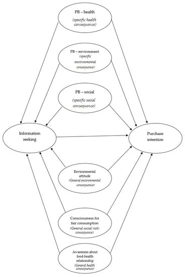 Information, especially negative information, and emerging consumer beliefs strongly influence purchase intent [12]. The results of the model of Verneau et al. [19] demonstrated that information seeking directly influences consumers in their purchase intent, more so than the consequences.