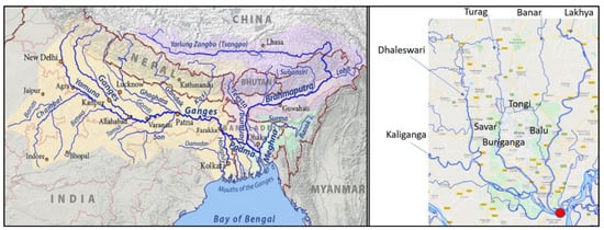 This paper focuses on pollution in the Dhaleshwari River system in Dhaka, Bangladesh, where a new complex of tanneries at Savar was established in 2016 (Figure 1). The Dhaleshwari river system is part of the Jamuna-Brahmaputra catchment and is the major source of freshwater to the Greater Dhaka Watershed. Flows in the river have decreased due to natural as well as human interventions, but augmentation of flow during the dry season in the Dhaleshwari and some other rivers is under consideration targeting pollution reduction and ecological restoration works planned under the Bangladesh River Masterplan and other initiatives.