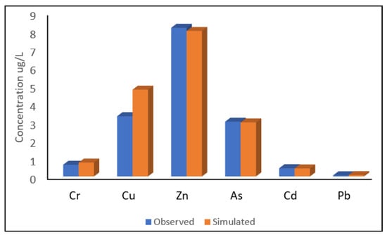 Samples were taken weekly for six weeks from all the sites (Figure 8), and chemical analysis conducted. Table 6 shows the average concentrations of metals in the upstream and downstream sites and the percent change between the two sites. The data show a consistent increase in pollution from upstream to downstream with chromium and cadmium, showing 254% and 65% increases, respectively. The metals concentrations at the upstream site are significant in themselves and this represents pollution from upstream discharges. So the new Savar tannary discharges are just exacerbating the existing pollution in the river system. The concentrations in the river are quite low because the river flows were high during the sampling programme and hence river dilution was significant. It should be noted that the sampling period coincided with the peak production season (post-Eid Al Adha), which follows a lunar calendar. As EID occurs at different times of the year it is important to consider the pollution levels in different seasons and especially during low flow periods when dilution is low. Therefore, in order to assess the impact of the river under low flow conditions, the river’s water quality was further investigated under low-flow conditions. Based on the historical flow dataset of the Dhaleshwari River system, Mimouni [] has estimated the dilution factor to be of the order of 130. This implies that metal concentrations in the river would be approximately 130 times greater in the dry season compared to the wet season (Table 6). Of course, other environmental variables change on a seasonal basis such as temperature, and it is important to bear these in mind during any modelling study. As described above, the INCA equations are temperature-dependant and so will change with changing temperature. The model also considers the changing water velocities and hence residence times so that decay and sedimentation rates will vary from high-flow to low-flow conditions.