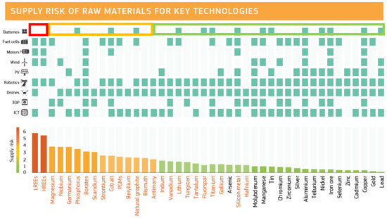 Supply risk of raw materials for key technologies according to the EU’s 2020 criticality assessment, [42].