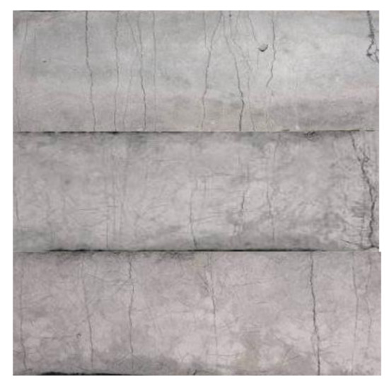 PVA fiber is the reinforcing material mixed into SHCC to enhance the brittleness of the binder and has high-ductile tensile strain. SHCC used current research mixed with a water/binder ratio (W/B) of 45%, a sand/cement ratio (S/C) of 71%, a fly ash/binder ratio (FA/B) of 20%, a slag/binder ratio (Slag/B) of 20%, and a PVA fiber volume fraction of 2.0%, as shown in Table 2 [13]. After mixing, the slump cone test on mixed fresh SHCC was carried out and a measured slump flow marked an average of 655 mm.