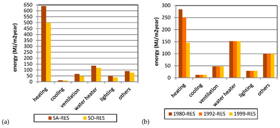 Estimation of energy use: (a) heritage houses and (b) contemporary houses.
