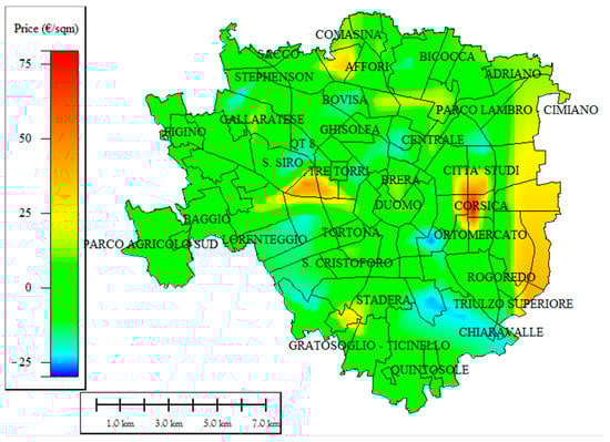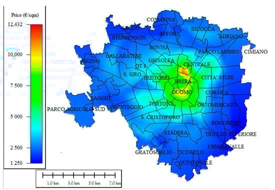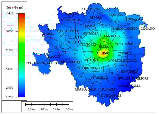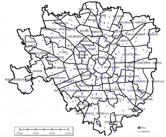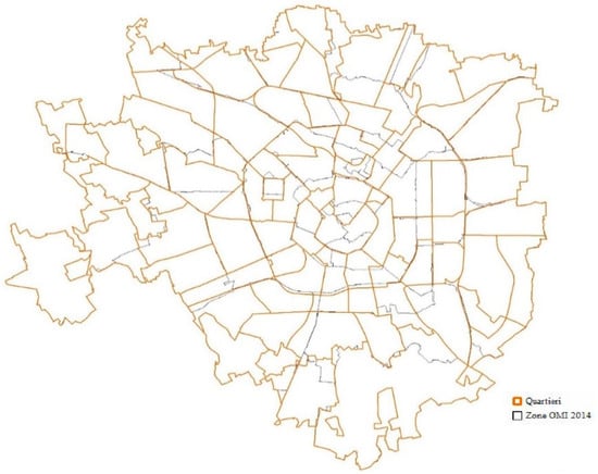In the OMI’s dataset structure, in order to homogenize the data, the metropolitan city of Milan (and the city of Milan) has been divided into different areas (OMI zones), which are defined as a continuous portion of the municipal territory that reflects a homogeneous sector of the local property market, in which there is uniformity of appreciation for economic and socio-environmental conditions [33].