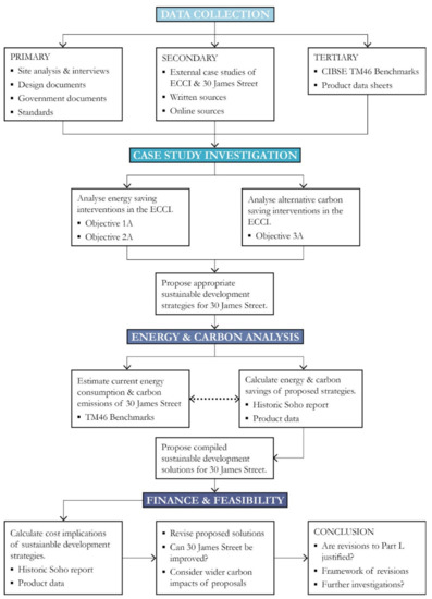 To this end, the study analyses the effectiveness of current standards for existing buildings under Part L and proposes alternative sustainable development strategies that show promise in reducing their environmental impact. Yung et al. have previously speculated the relevance of economics, cultural heritage and environmental preservation as factors in the sustainable development of historic buildings and, respecting those themes, this study expands upon the energy and carbon focus of Part L to consider design impacts and financial feasibility of proposed solutions [21]. This has the wider ambition of identifying effective sustainable development solutions for existing buildings to inform a framework of revisions that could improve Approved Documents L1b and L2b, reflecting the full breadth of sustainable design technologies available in the modern construction market. In this way we can ensure that British buildings, existing or new, are doing all that they reasonably can to achieve higher standards of sustainable performance, therefore reducing the environmental impact of the British construction industry.