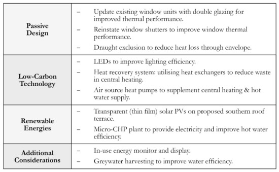 - English Heritage. Energy Efficiency and Historic Buildings. June 2018. Available online: https://historicengland.org.uk/advice/technical-advice/energy-efficiency-and-historic-buildings/ (accessed on 3 October 2019).