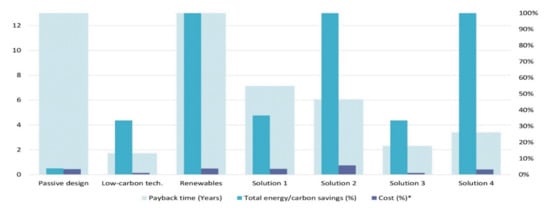 - Bahadori-Jahromi, A.; Salem, R.; Mylona, A.; Godfrey, P.; Cook, D. Retrofit of a UK residential property to achieve nearly zero energy building standard. Adv. Environ. Res. 2018, 7, 13–28. [Google Scholar] [CrossRef]