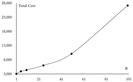 The carbon emissions cost is related to the average queue length of trucks, the average carbon emissions cost of each truck and the average number of arrival trucks in each appointment period. Therefore, the queueing structure of trucks is an system, the average queue length can be obtained, which is . Thus, the carbon emissions cost can be expressed as