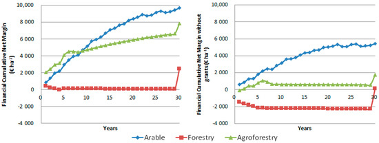 - Agroforestry: Silvoarable system with the poplar (Populus spp.) hybrid (Beaupré) over a rotation of 30 years and a four-year crop rotation identical to that of the arable system.