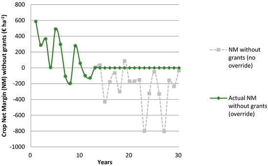 - Arable: A four-year rotation of autumn sown winter wheat (feed), winter wheat (feed), winter barley (feed), and winter oilseed rape over a time horizon of 30 years.