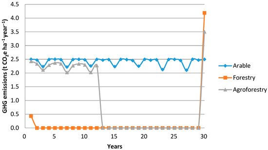 Kaske, K.J.; García de Jalón, S.; Williams, A.G.; Graves, A.R. Assessing the Impact of Greenhouse Gas Emissions on Economic Profitability of Arable, Forestry, and Silvoarable Systems. Sustainability 2021, 13, 3637. https://doi.org/10.3390/su13073637