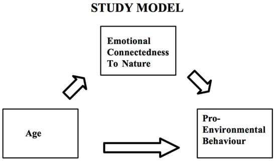 The present study was designed to investigate the factors that contributed to ECN and PEB in Canadians. The study investigated the role of living context, age and gender on ECN and PEB. There are a number of gaps in the previous literature on these topics. First, most studies that have investigated the relationship between environmentalism and living context have focused on European samples. The present study helped to address whether or not these previous findings hold true within a North American context. Second, with the exception of Krettenauer’s (2017) study on the topic, few studies have investigated the age-related differences in the relationship between ECN and PEB [8]. This study is of particular importance, because it assists in identifying the factors that are responsible for driving pro-environmental behaviours in developed nations. A model of the study can be found in Figure 1.