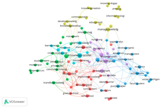 At this stage, 151 articles were published. Some of the most studied topics were: knowledge sharing and institutional repositories, social capital and knowledge exchange, knowledge networks in business schools, knowledge transfer between business managers and students of these schools, and the skills associated with knowledge sharing (Figure 9).