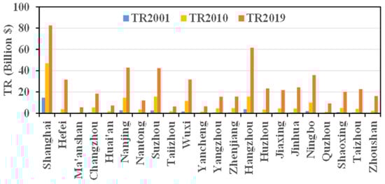 Jiao, G.; Lu, L.; Chen, G.; Huang, Z.; Cirella, G.T.; Yang, X. Spatiotemporal Characteristics and Influencing Factors of Tourism Revenue in the Yangtze River Delta Urban Agglomeration Region during 2001–2019. Sustainability 2021, 13, 3658. https://doi.org/10.3390/su13073658