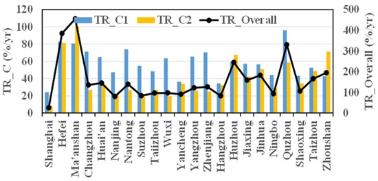 | Wuxi | LN(TR) = 3.34 + 1.06NPE *** + 0.29GDP *** + 1.29UR *** |