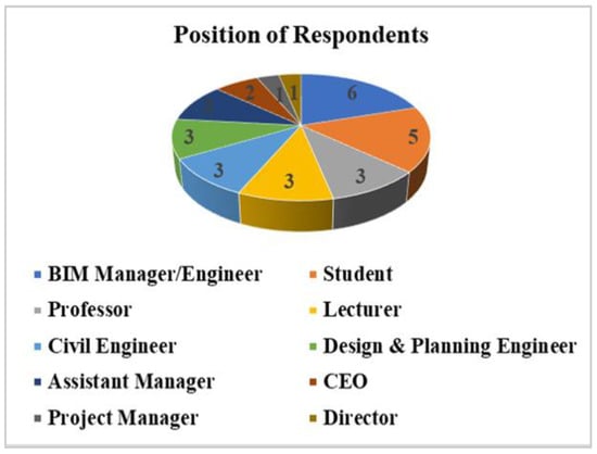 The position of respondents in their respective organizations is shown below. The respondents had various posts in their organizations, such as CEOs, Directors, project managers, site engineers, academics, and others, as represented in Figure 3.
