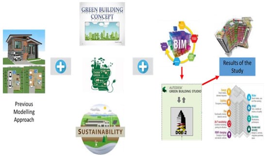 Despite the concept of “environmental sustainability” and “sustainable development” being very well known to the AEC industry for many years, the industry is still considered an infant in terms of controlling and managing carbon emissions and is criticized for being a major carbon emitter [4]. After being hit by disastrous global warming issues, environmental degradation, unexpected climatic changes, the shortage of energy resources, and increasing energy costs, the AEC industry is continuously being pressured to minimize their energy consumption to avoid carbon emissions and tackle the concerns. Therefore, humans in general and the AEC industry have shifted their focus towards the building and development of the low carbon green buildings and environmentally friendly cities [3,18]. The green design can be best served through an integrated design process, and BIM is best known for facilitating this. Taking this into account, continuous endeavors are being made in exploring the possibility of BIM in facilitating the development of green buildings. The innovation of BIM technology in green and sustainable buildings has brought some latest means to predict, manage, and monitor the environmental impacts of construction through its virtual prototyping and visualization technology. Due to BIM integration and coordination features with different models like Mechanical, Electrical, and Plumbing (MEP), and architecture; it can enclose and incorporate loads of information within one single model, which helps in efficient analyses of environmental performances and to enhance sustainability measures more precisely [4]. BIM is possibly the best methodology to integrate the analog-energy buildings, airflow analysis, and buildings’ sunshine ecosystems. Using BIM helps us reduce energy consumption and construction waste to a greater extent and improve construction quality [25]. With the availability of innovative software like GBS that uses cloud computing technology for different building analyses by gathering data from its nearest weather station. It can perform tasks such as estimation of energy consumptions, production and use of renewable energy, and calculations regarding the building’s annual carbon footprint [4].
