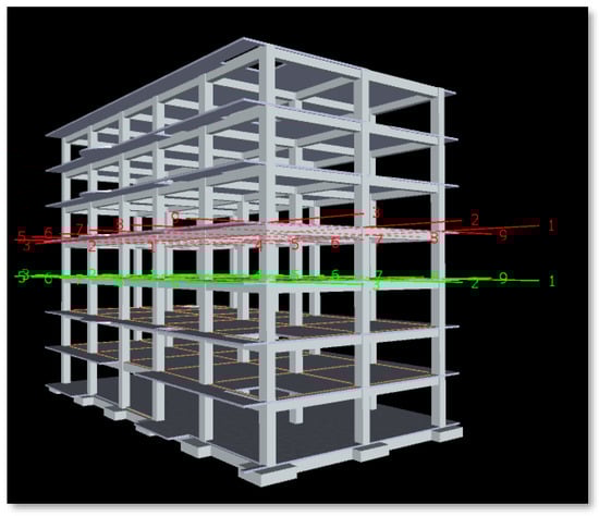 The primary 2D model drawing was transformed into 3D in Revit, and the different constructional elements are added in the whole model, as an example, the structural model is shown in Figure 7.