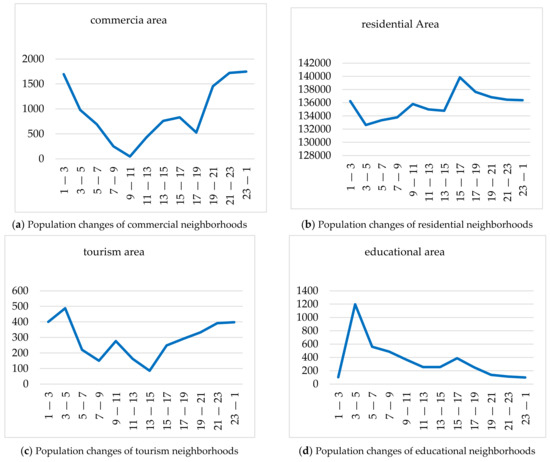 Population changes of commercial, residential, educational, tourism, and medical neighborhoods.